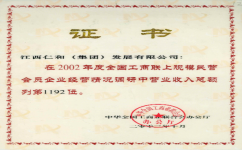 2002年度全國工商聯上規模民營會員企業經營情況調研中營業收入總額列第1192位