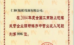2004年度全國工商聯上規模民營企業調研排序中營業收入總額列第996位