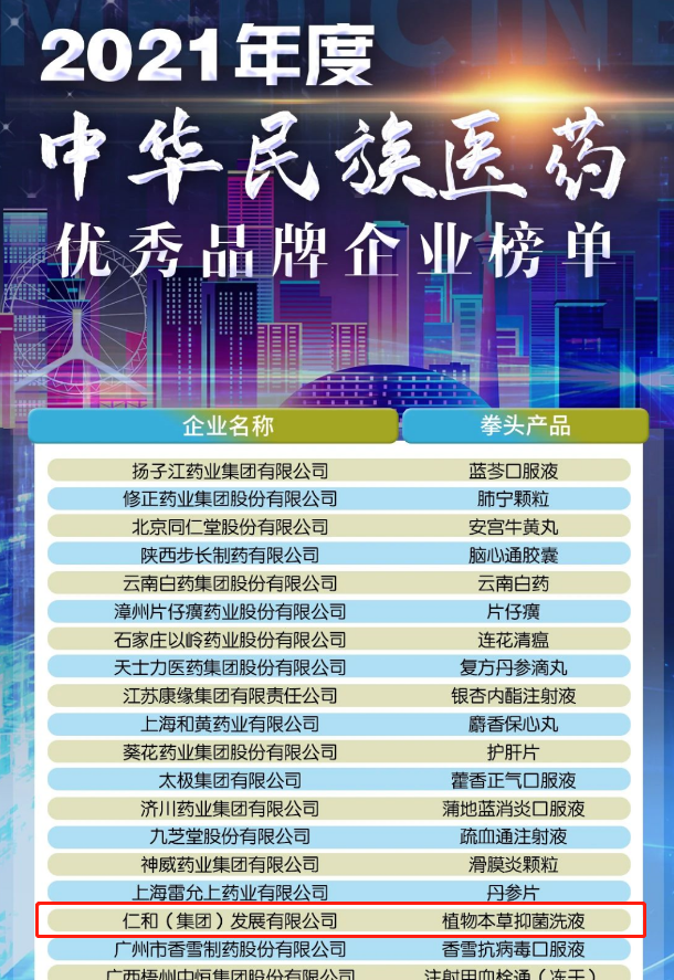 仁和連續(xù)6年入選中華民族醫(yī)藥優(yōu)秀品牌企業(yè)榜單