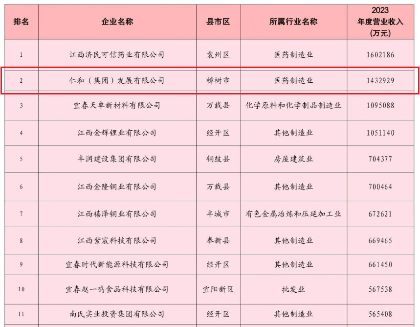 仁和集團(tuán)榮登2024宜春民營企業(yè)百強(qiáng)榜第二