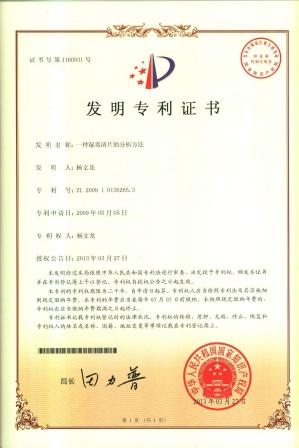 一種濕毒清片的分析方法發明專利證書 發布時間: 2019年12月18日 11:52:17 閱讀量: 11,623 下一篇:一種清火膠囊內容物的水分含量的分析方法發明專利證書上一篇:一種小兒風熱清顆粒的分析方法發明專利證書